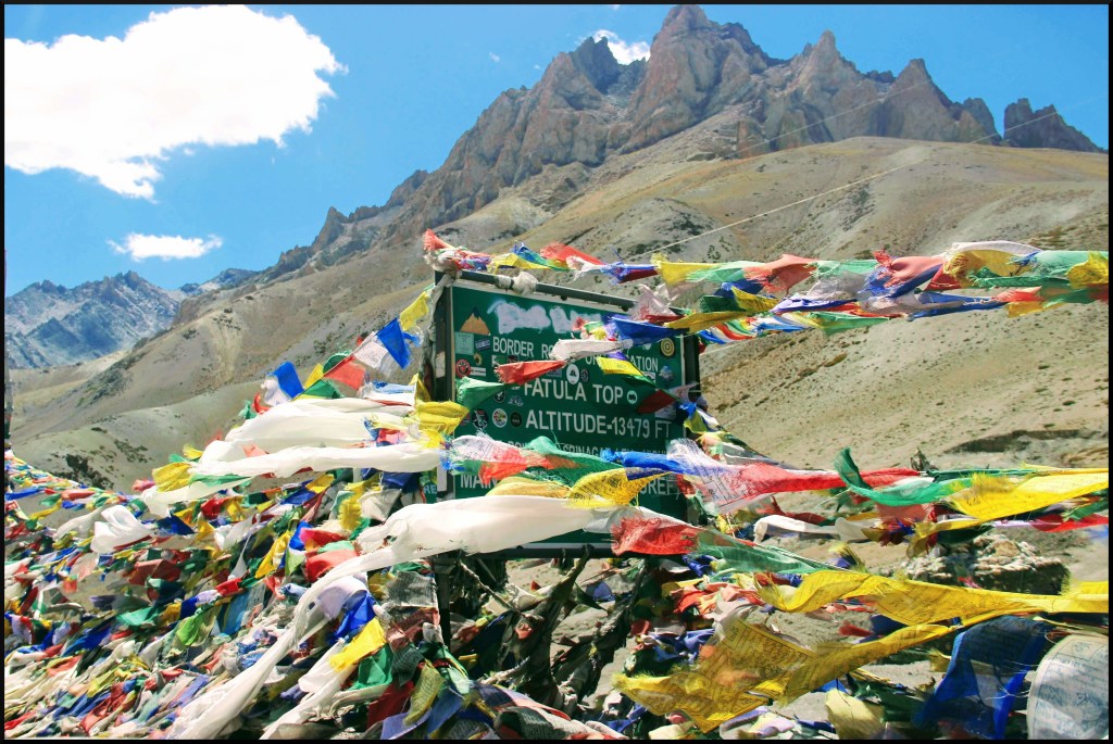 Due to the tense political situations in the region, you will spot soldiers and army convoys everywhere. However this stretch of the route is simply spectacular. The views had again started changing drastically with layers of dark brown mountains illuminated in glittering sun, and clouds making shades over the mountains. We ascended for another 1 hour 30 minutes to reach the second mountain pass enroute, Fotu La. The roads were really good at both the passes and we kept going without any difficulty.